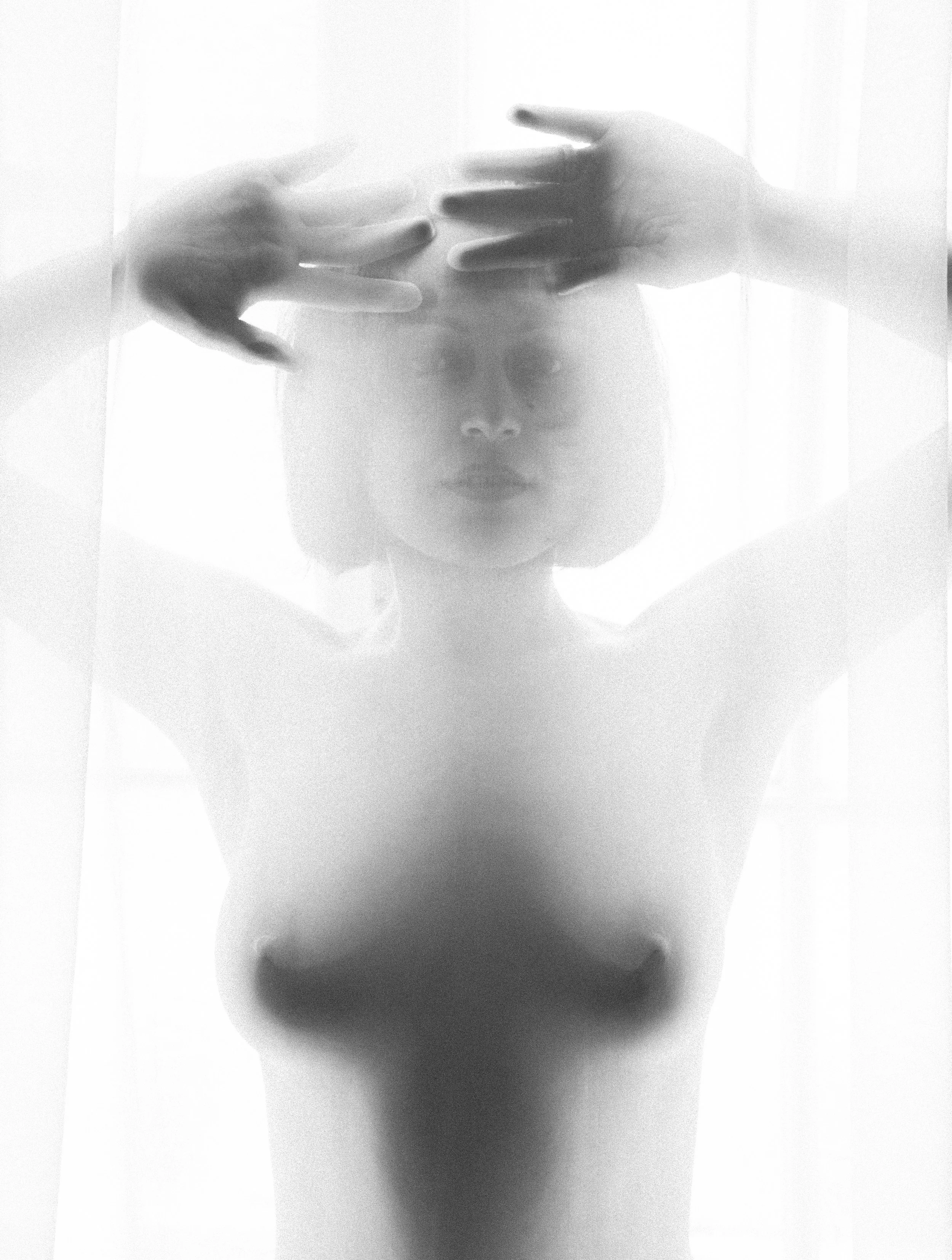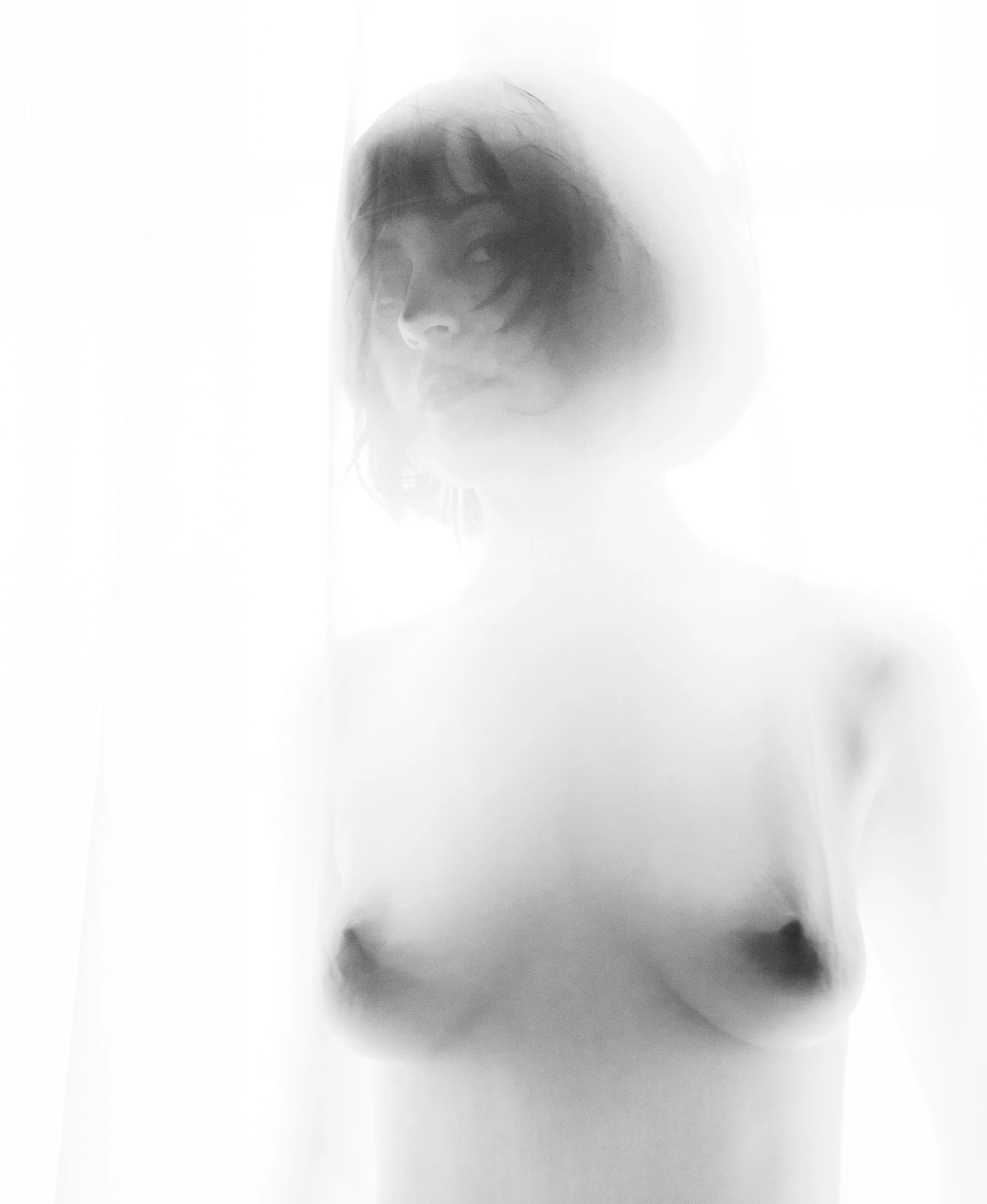 through veils of shadow and sheer fabric, the body emerges only to retreat again, caught in the space between revelation and concealment.