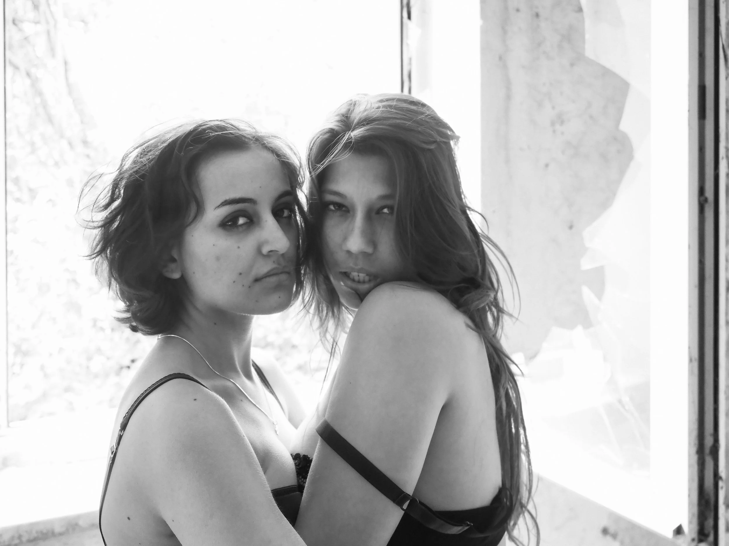 in the ruins of an abandoned factory, two figures move like whispered prayers.