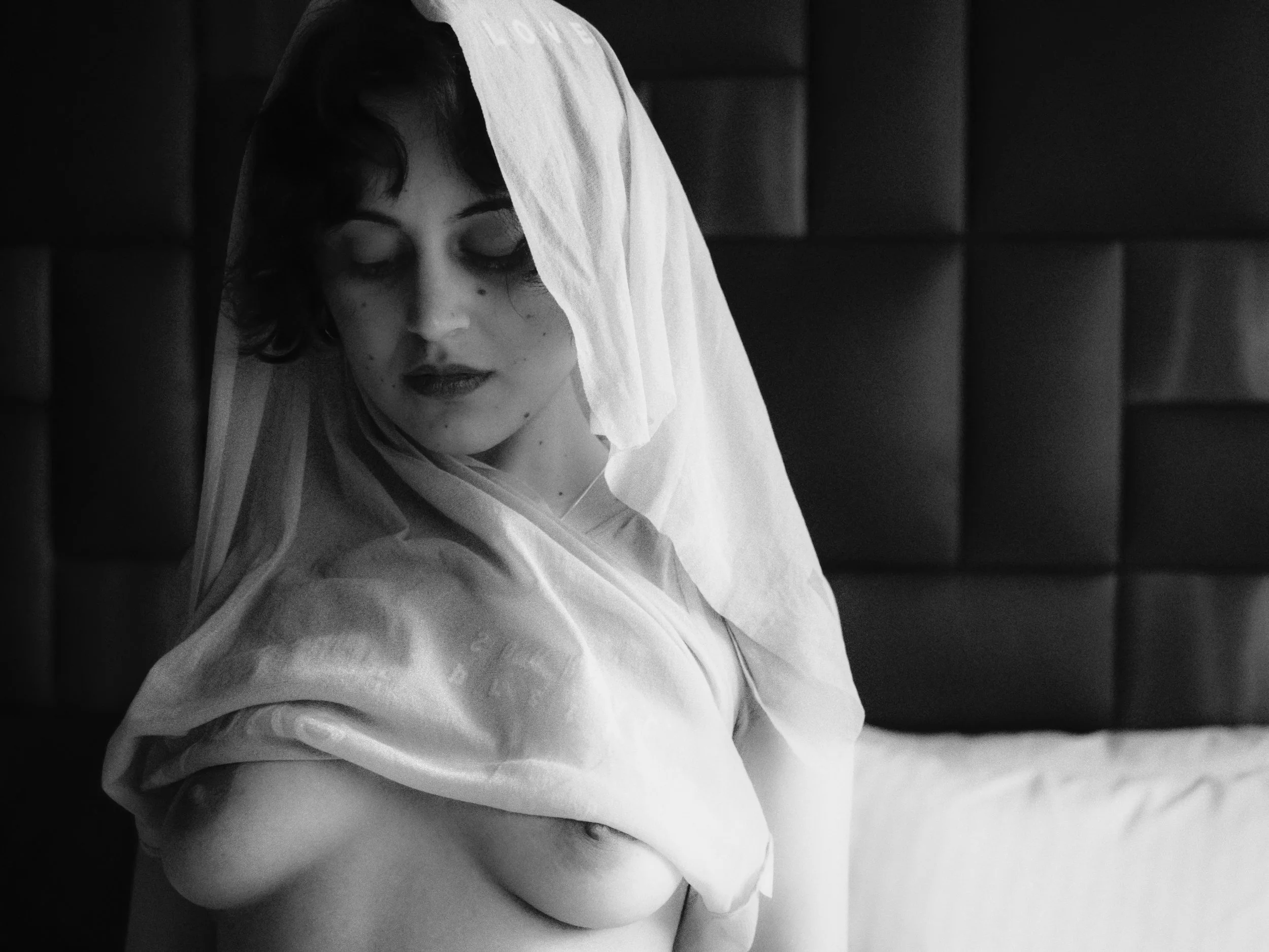 religious iconography meets bare flesh not just to blaspheme, but to question who gets to decide what bodies mean.